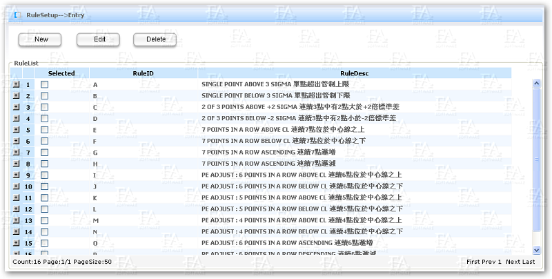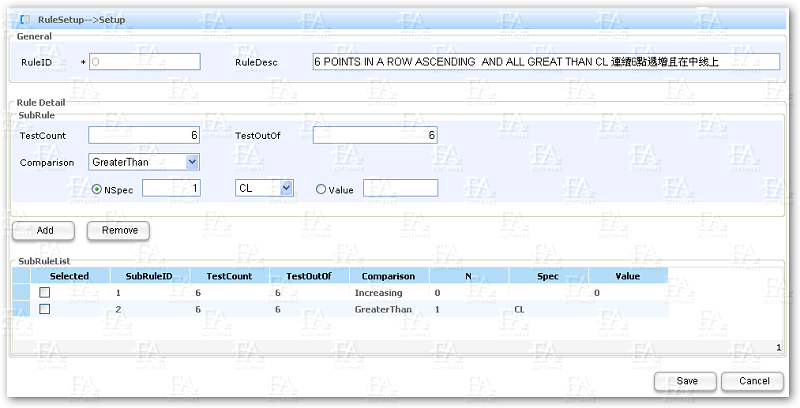 In terms of SPC monitoring rules, FA SPC supports user-defined SPC Rules in addition to universal Western Electric Rules and Nelson Rules.
